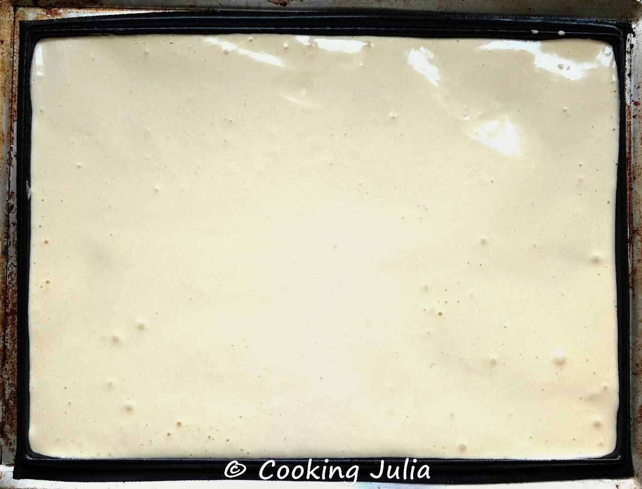 Enfourner pour 10 minutes. Démouler la génoise sur la toile Silpat. La laisser refroidir.