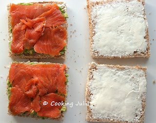 Il me restait deux tranches de saumon fumé à finir et j'avais un avocat bien mûr à utiliser rapidement. Pourquoi alors ne pas les associer dans des sandwiches anglais au pain de mie, un snack sain qu'on apprécie particulièrement pour un dîner express, genre plateau-repas devant la télé ? Ni une ni deux, l'assemblage est rapide et on s'est régalés : j'ai bien fait de prendre en photo le déroulé de la recette et le produit fini pour vous en faire profiter !